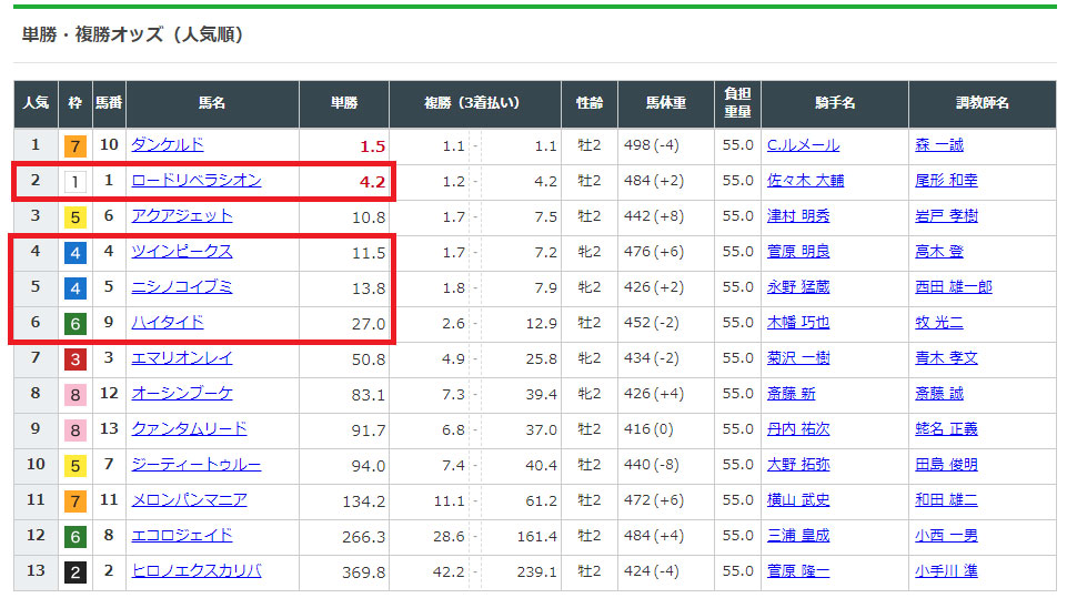 ⑩を切っている馬単なので取れたら美味しいオッズになるでしょうね。