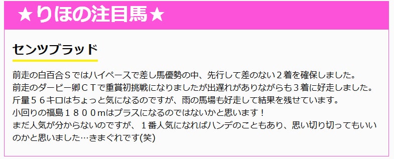 そしてりほさんの重賞コラムはみなさんチェックしていただいていますか?