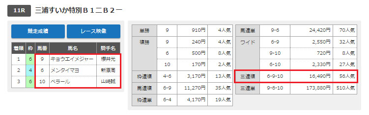 13-14-10で的中!!11番人気の⑭アイソラシーが2着に来て見事万馬券的中!