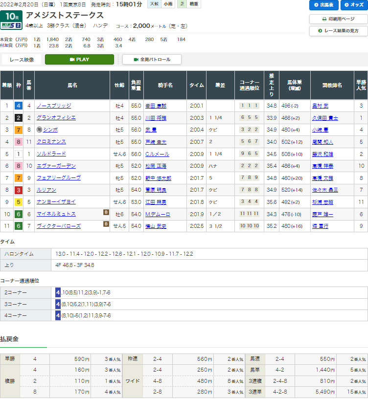 【検証レース:2/20 東京11R GⅠフェブラリーステークス】