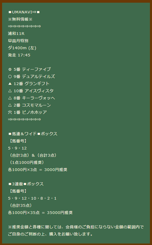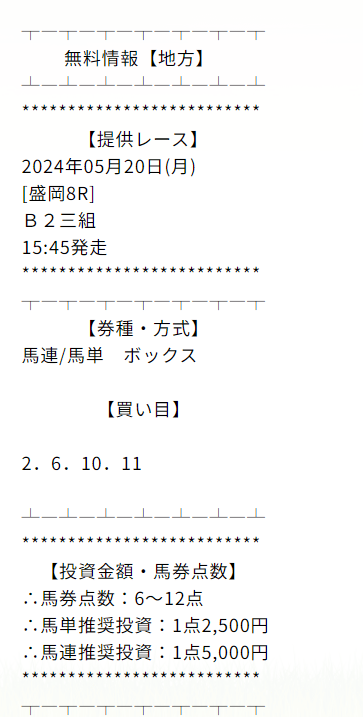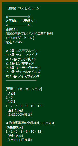 約束された万馬券の買い目が届く!