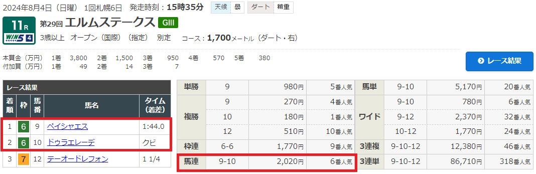 上位人気ではありますが、美味しいオッズで馬連でも20倍つきました。