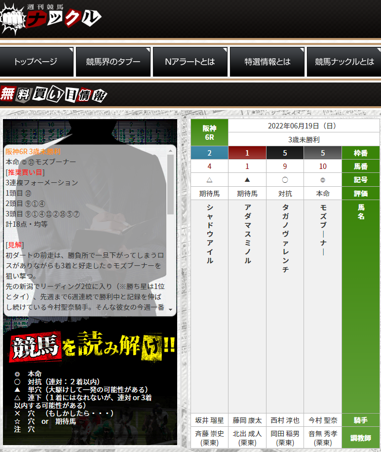 ナックルの予想って見解が載ってるし見てて本当に役立つんだよな~