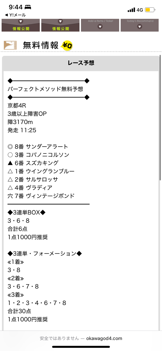 無料情報が午前中のレースでビックリして速攻馬券買ったけど間に合って良かった~