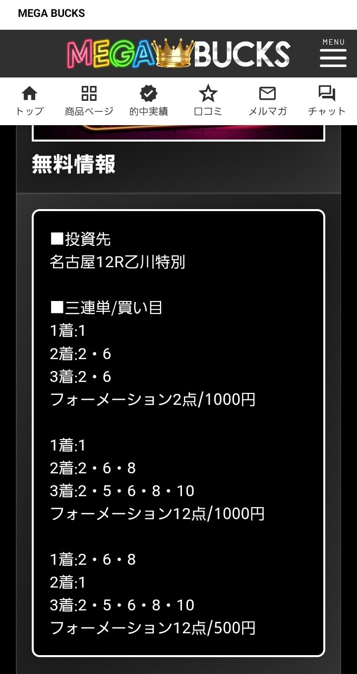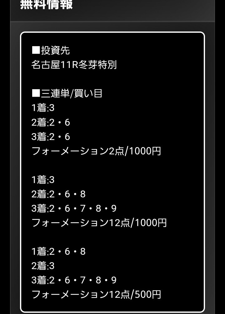 約束された万馬券の買い目が届く!