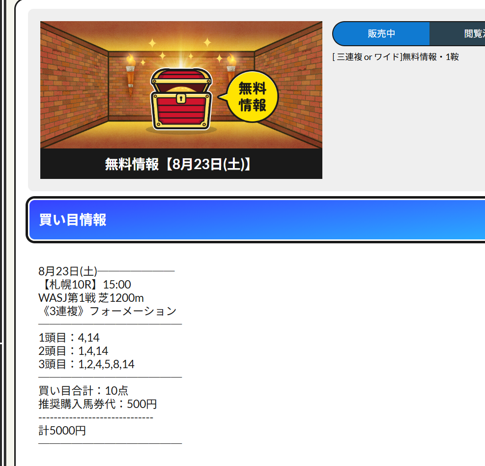 毎週欠かさず参加している、リホラボの直前情報。 今回は140,700円の払戻しでした! 馬券代は5,000円だったので135,700円のプラスになりました!