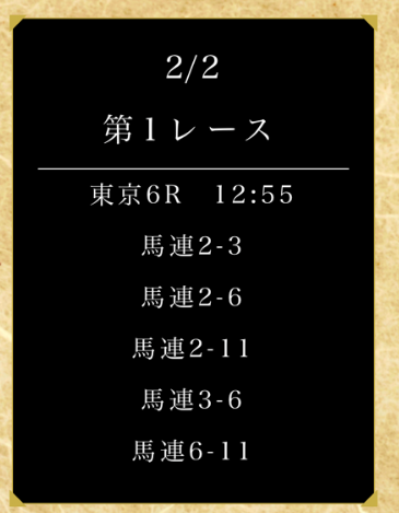 約束された万馬券の買い目が届く!