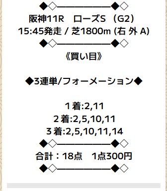 5400円の馬券代がローズステークス10万馬券的中で36万3270円ゲット!!