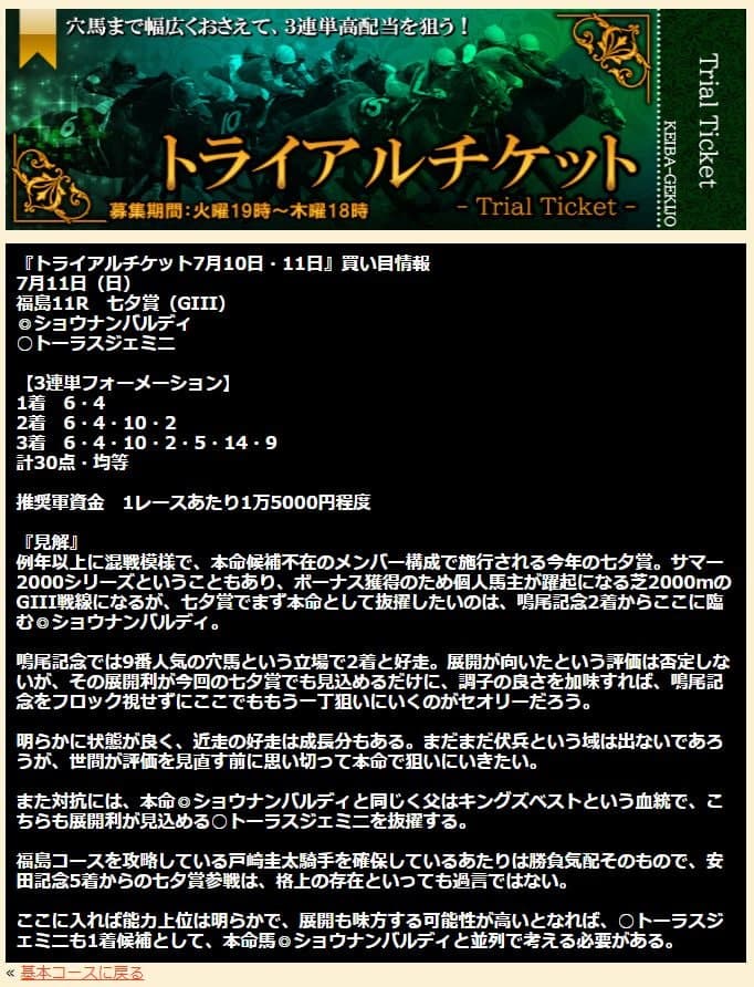 大荒れ七夕賞的中貰えました! 口コミ通りの評判で夏競馬使えそうですね、ハンデ戦の予想は難しいですからね…