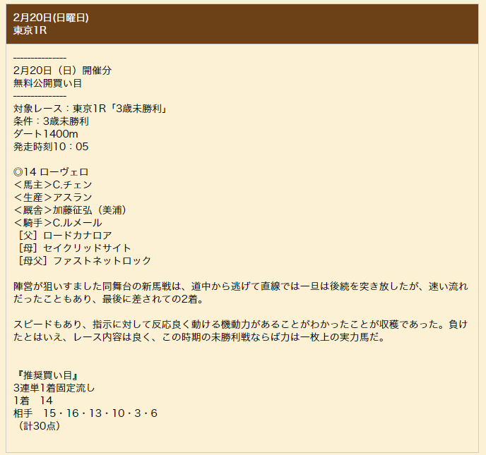 このサイトの有料情報、言うまでもないと思いますが全く当たりませんでした。カスリもしない酷いハズレ方でした。